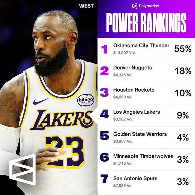西部各队进总决赛热门排行:雷霆上涨17%到55%,湖人9%排第四